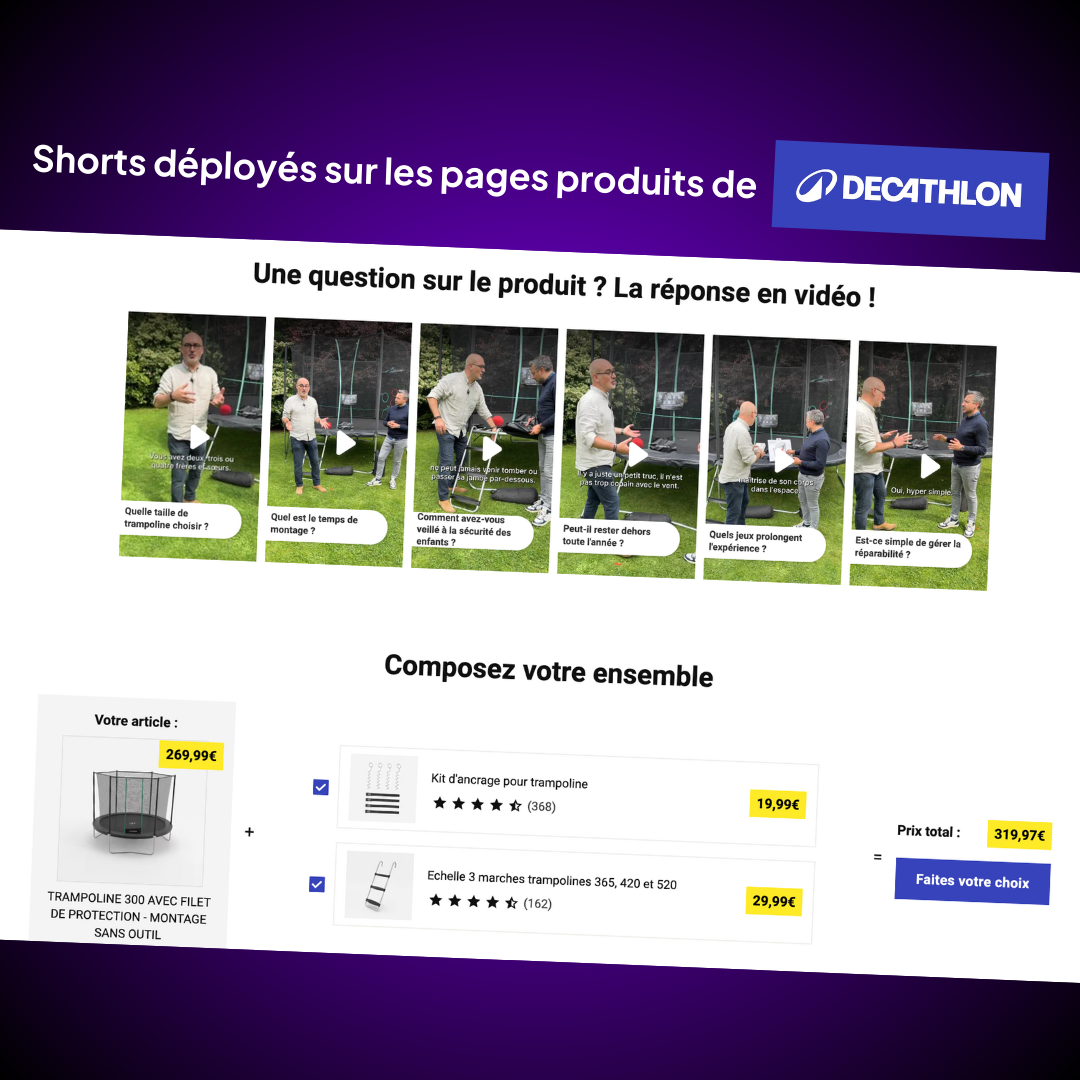 Les shorts sont également un excellent moyen d’illustrer l’utilisation d’un produit directement sur ses pages associées, comme c’est le cas sur Decathlon, où ces vidéos permettent aux clients de mieux visualiser les fonctionnalités et l’expérience d’utilisation en situation réelle.