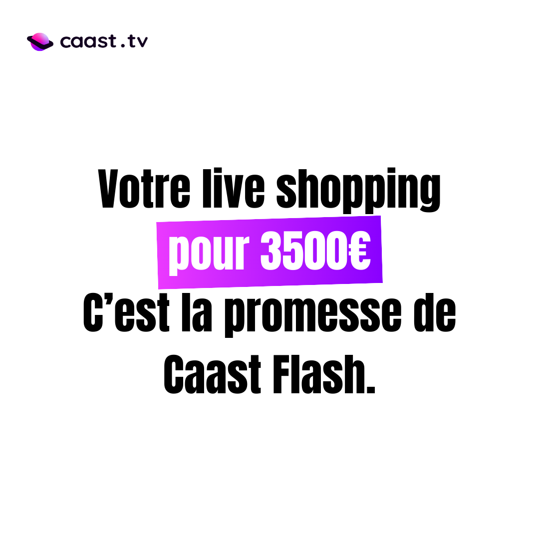 Caast Flash a été conçu pour devenir un pilier récurrent de votre stratégie e-commerce. Que vous souhaitiez créer du contenu en continu ou renforcer vos temps forts commerciaux, l’offre s’adapte : pour moins de 4000€ / live, vous pouvez activer chaque semaine un levier performant en live.