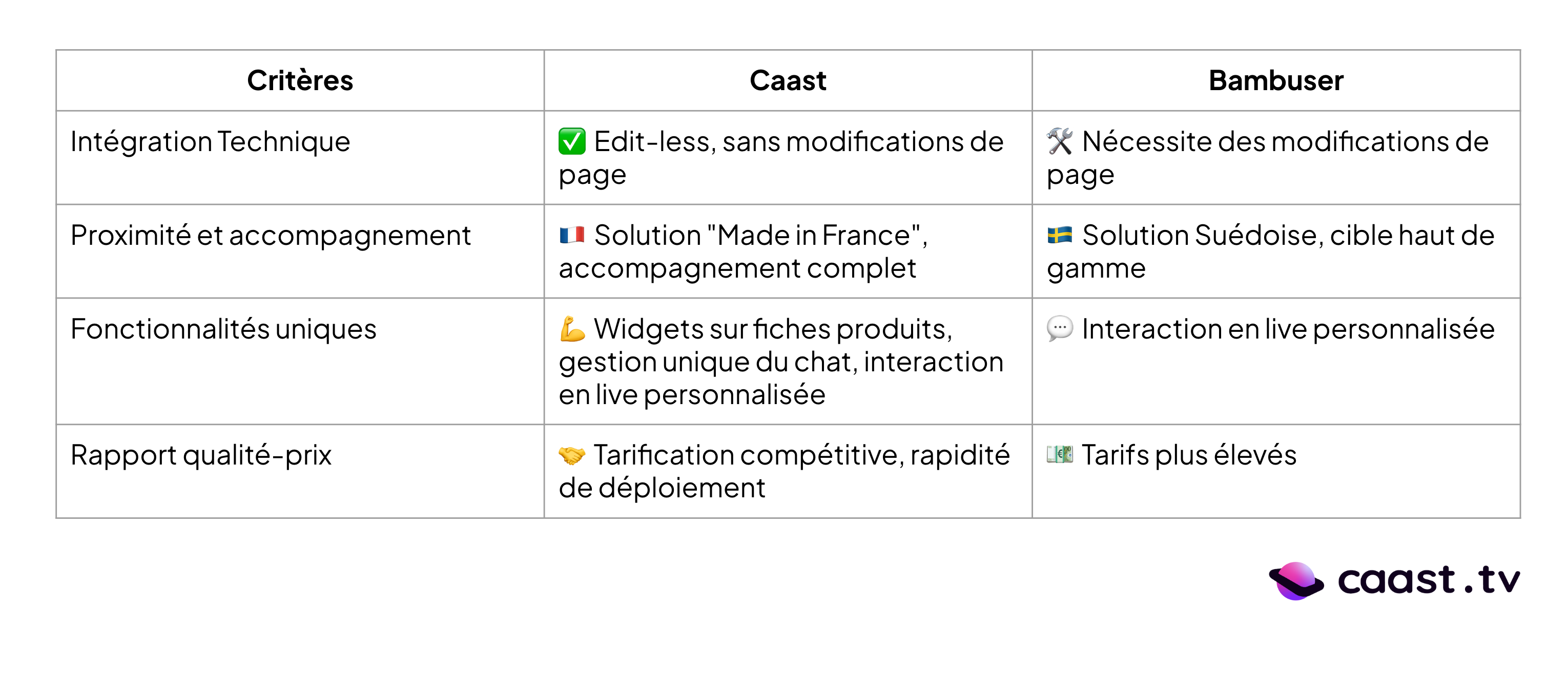 Tableau comparatif : Caast VS Bambuser