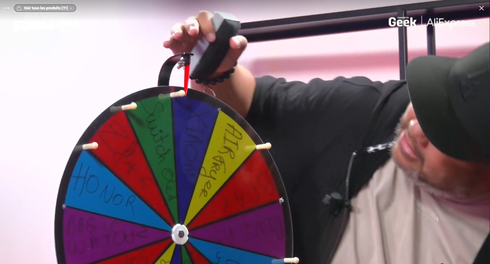 - Roue de la fortune en direct : Une roue tourne pour choisir aléatoirement quoi offrir aux participants des jeux concours. Journal du Geek le propose régulièrement pendant leurs lives