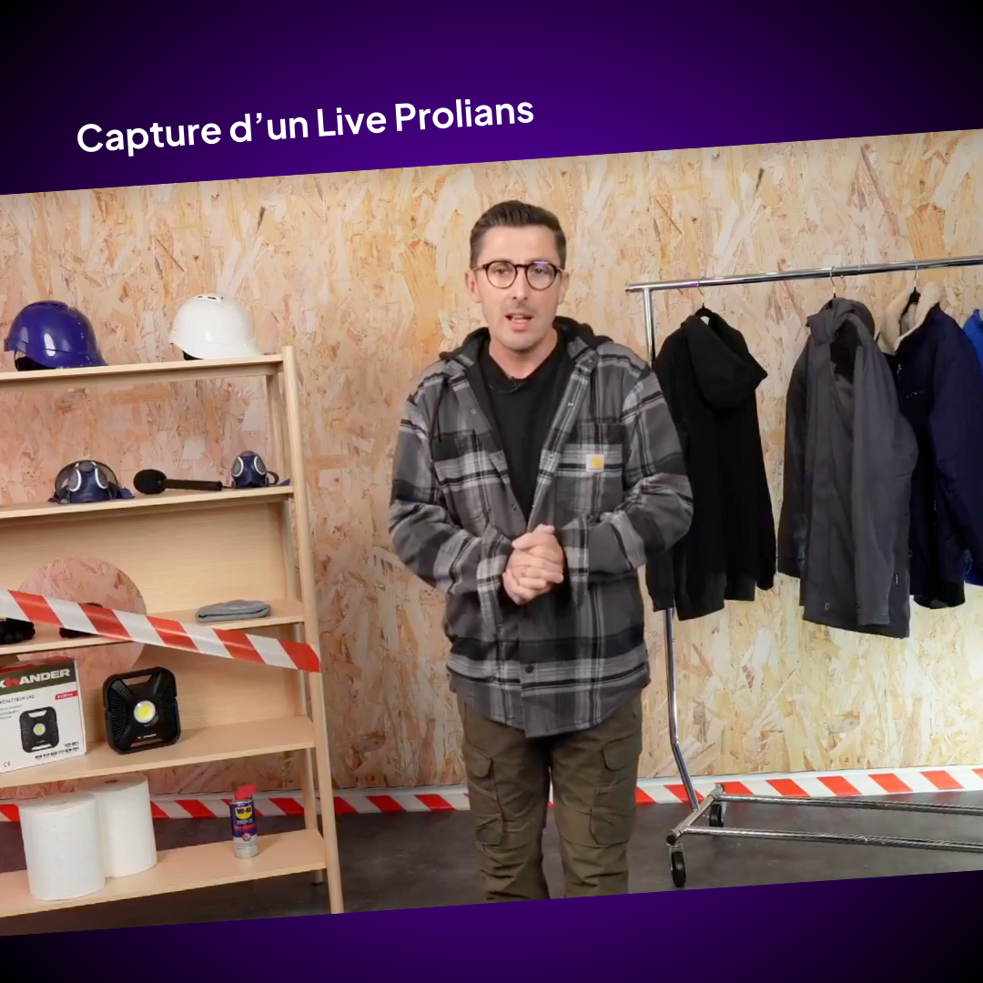 Un Live permet de présenter en détail les fonctionnalités d’un produit, de montrer son utilisation en situation réelle et de répondre aux questions des acheteurs en direct. Cela est particulièrement utile pour des équipements industriels, des logiciels ou des solutions complexes. Prolians a fait un live sur leur nouvelle collection OPSIAL et l'a partagé a tout leur réseaux.