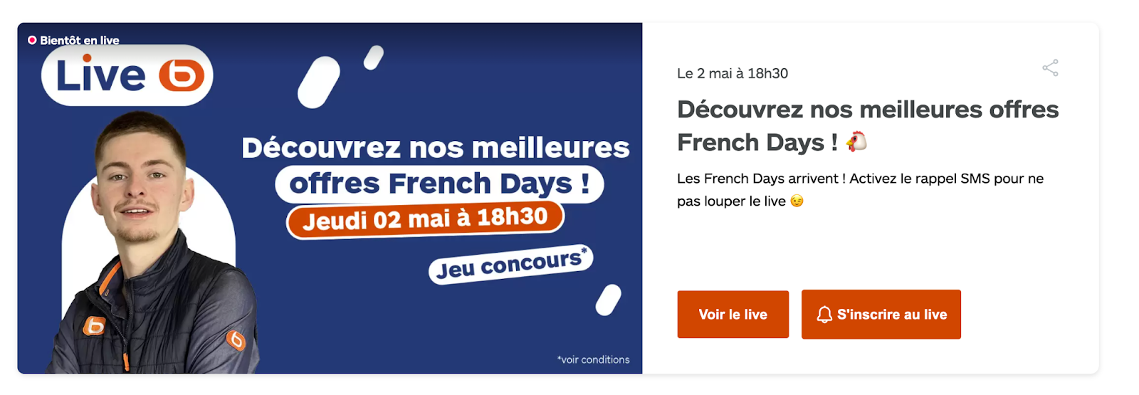 Boulanger garantit une bonne promotion de ces Live Shopping grâce à une régularité de ces Live : la marque donne rendez-vous à ses clients tous les jeudis soirs, avec une approche alliant technique et divertissement.